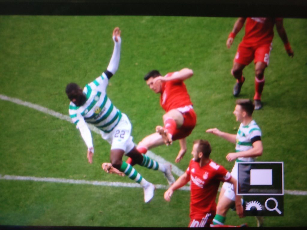 Madden, who has been demoted for this weekend’s fixtures, also tried to prevent Edouard leaving the park towards the touchline at the South Stand after receiving treatment. He did NOT repeat this blocking movement in the second half when an Aberdeen player was down injured in the other penalty area. Funny that.
