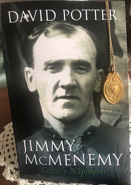 Jimmy McMenemy returned to Celtic football club and joined the Celtic coaching staff between 1935 – 1940. The medal strung over David Potter’s excellent tome is the medal that Jimmy (Napoleon) McMenemy won as Celtic trainer and assistant manager under Willie Maley in season 1935.