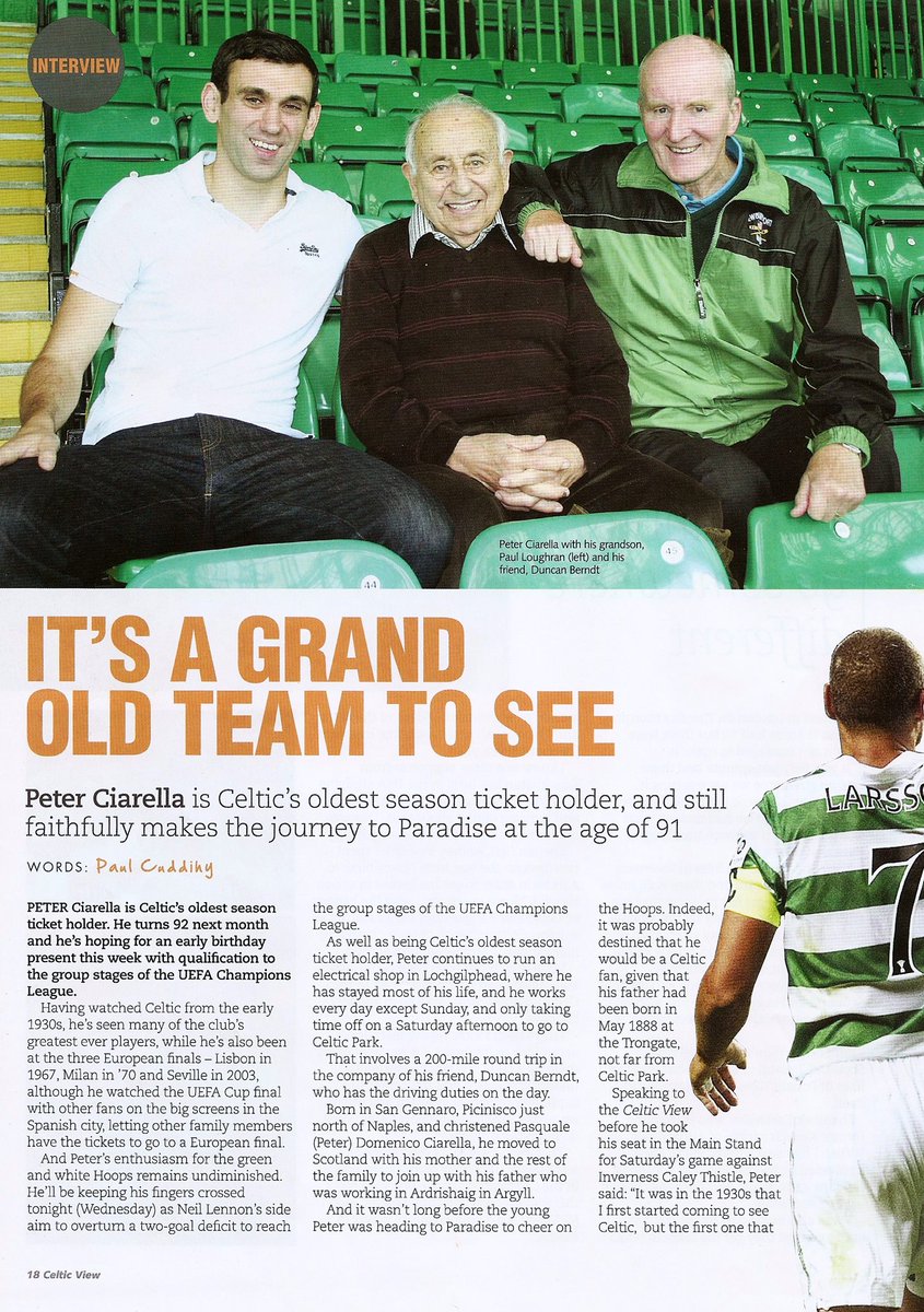 Peter Ciarella was an incredible man, and was a Celtic follower and season-ticket holder for many years, attending his first match as long back as 1932. Up to his recent passing, he managed to see a Celtic game under every single Celtic manager from Willie Maley to Ange Postecoglou.