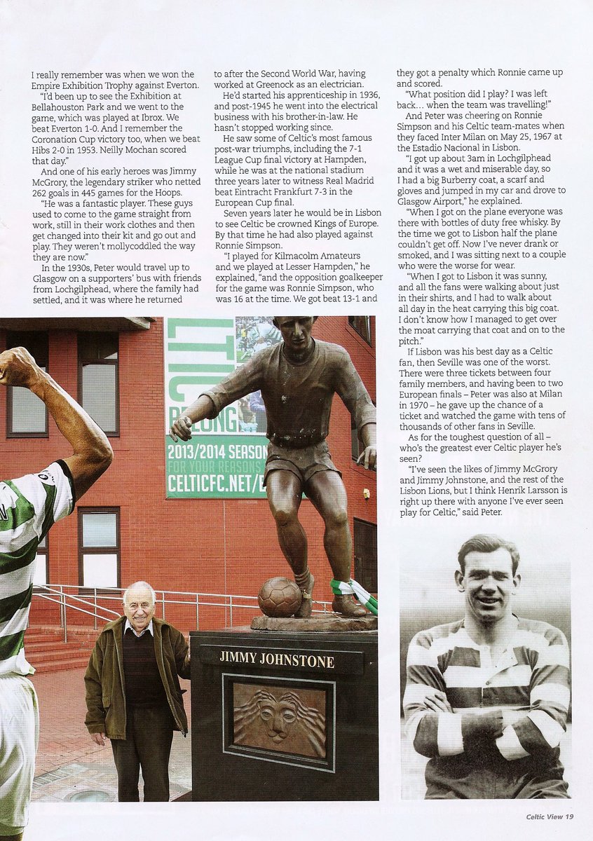 My Grandad watched every game home and away on TV in his last few years – his favourite players were Jimmy McGrory and Henrik Larsson which he made reference to in the Celtic View interview (shown below).