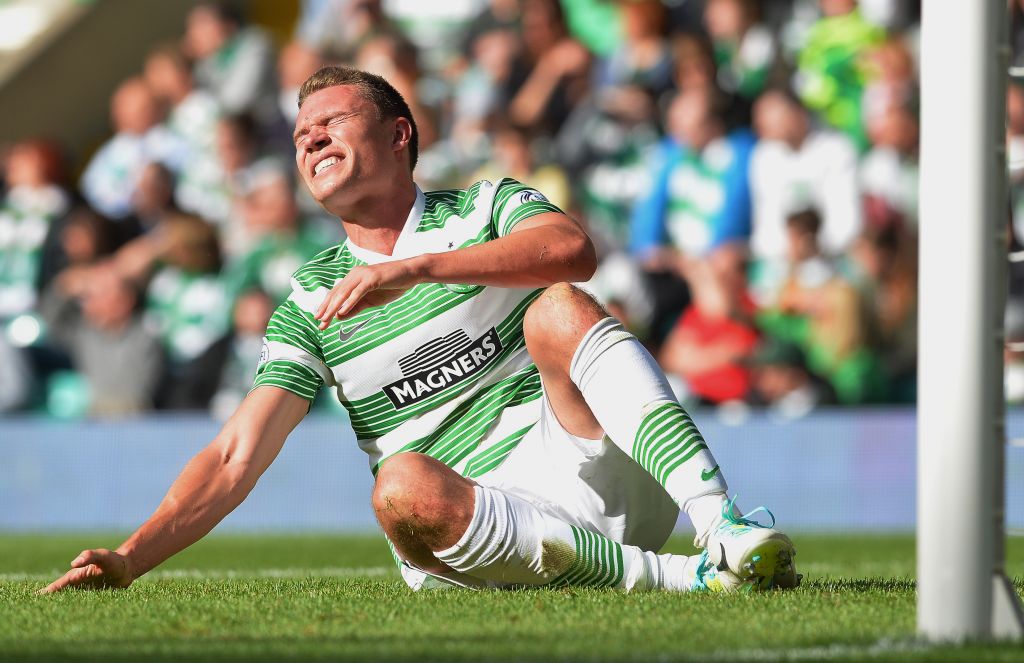 Derk Boerrigter of Celtic picks up an injury on his debut during the Scottish Premier League game between Celtic and Ross County at Celtic Park Stadium on August 03, 2013 in Glasgow, Scotland. (Photo by Mark Runnacles/Getty Images)
