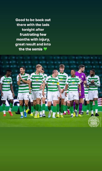Another player making a return last night after a period out of the team was Jack Hendry, who replaced Man of the Match Jeremie Frimpong late in the game. The central defender also took to Instagram, saying “Good to be back out there with the lads tonight after frustrating few months with injury, great result and into the semis.”