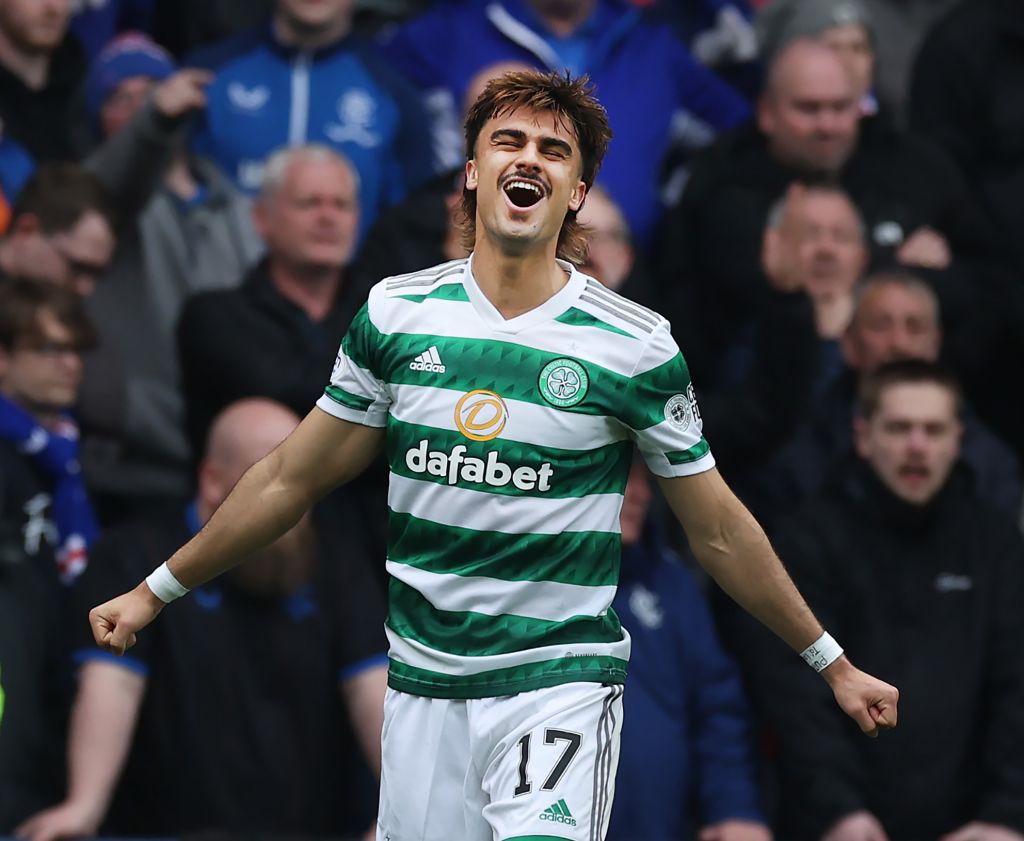 Jota of Celtic celebrates after scoring only goal of the game during the Scottish Cup Semi Final match between Rangers and Celtic at Hampden Park on April 30, 2023 in . (Photo by Ian MacNicol/Getty Images)