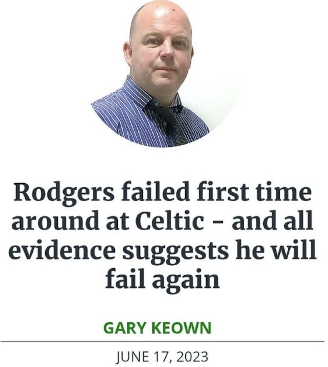 Gary Keown who writes for the Scottish Daily Mail is currently trending on X due to his ill fated comments on Brendan Rodgers a year ago. Gary in his weekly column boldly predicted that Brendan would fail in his second spell in the Celtic dugout.