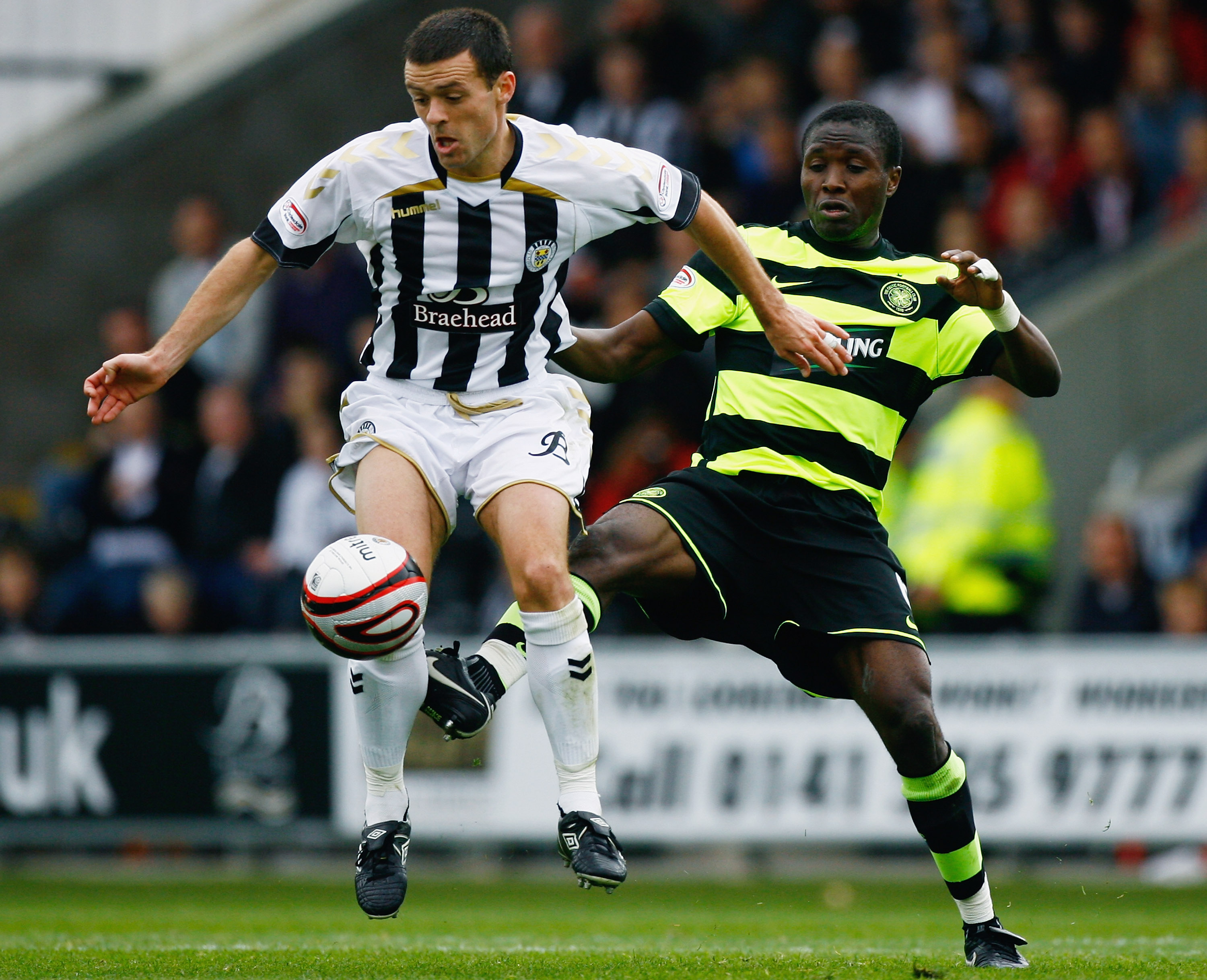 Landry N’Guemo of Celtic (R) during the Scottish Premier league match between St Mirren and Celtic on September 26, 2009. (Photo by Jeff J Mitchell/Getty Images)