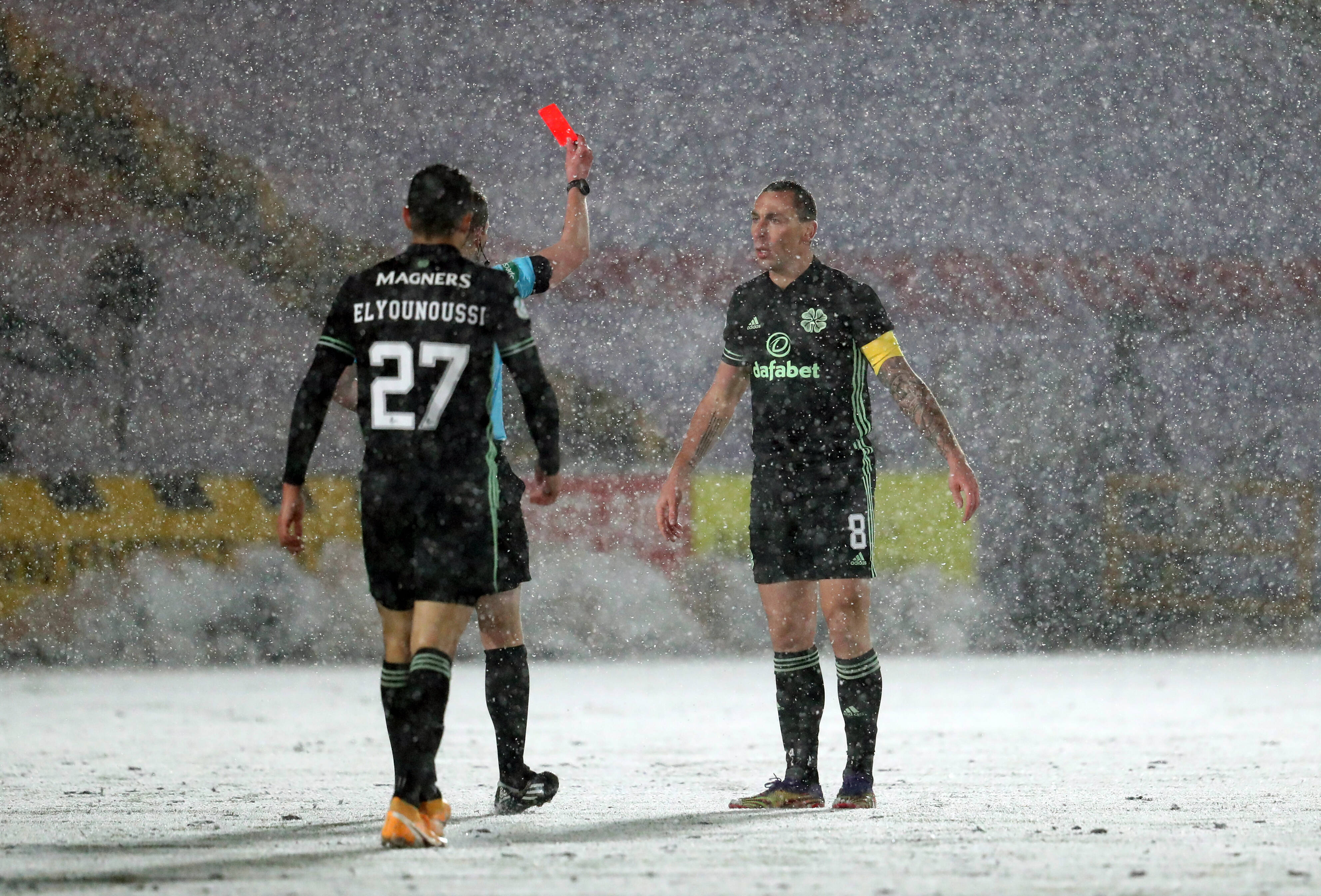 B.A.BARKAS – 5.5/10 – Another nae-touch Greek tragedy as his bewildering stint abroad for the mighty unbeatable Glasgow Celtic confuses him more than his lingo flummoxes us. No chance for goals gifted by a backline coached at St.Trinians, at least appeared game to compete/flap in the snow; probably the novelty of it.