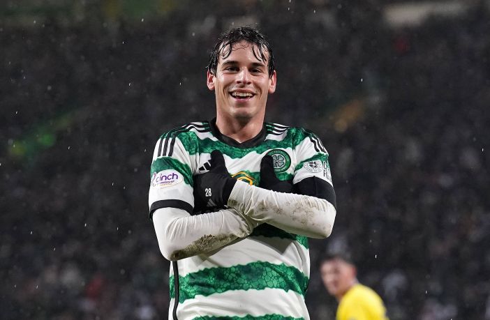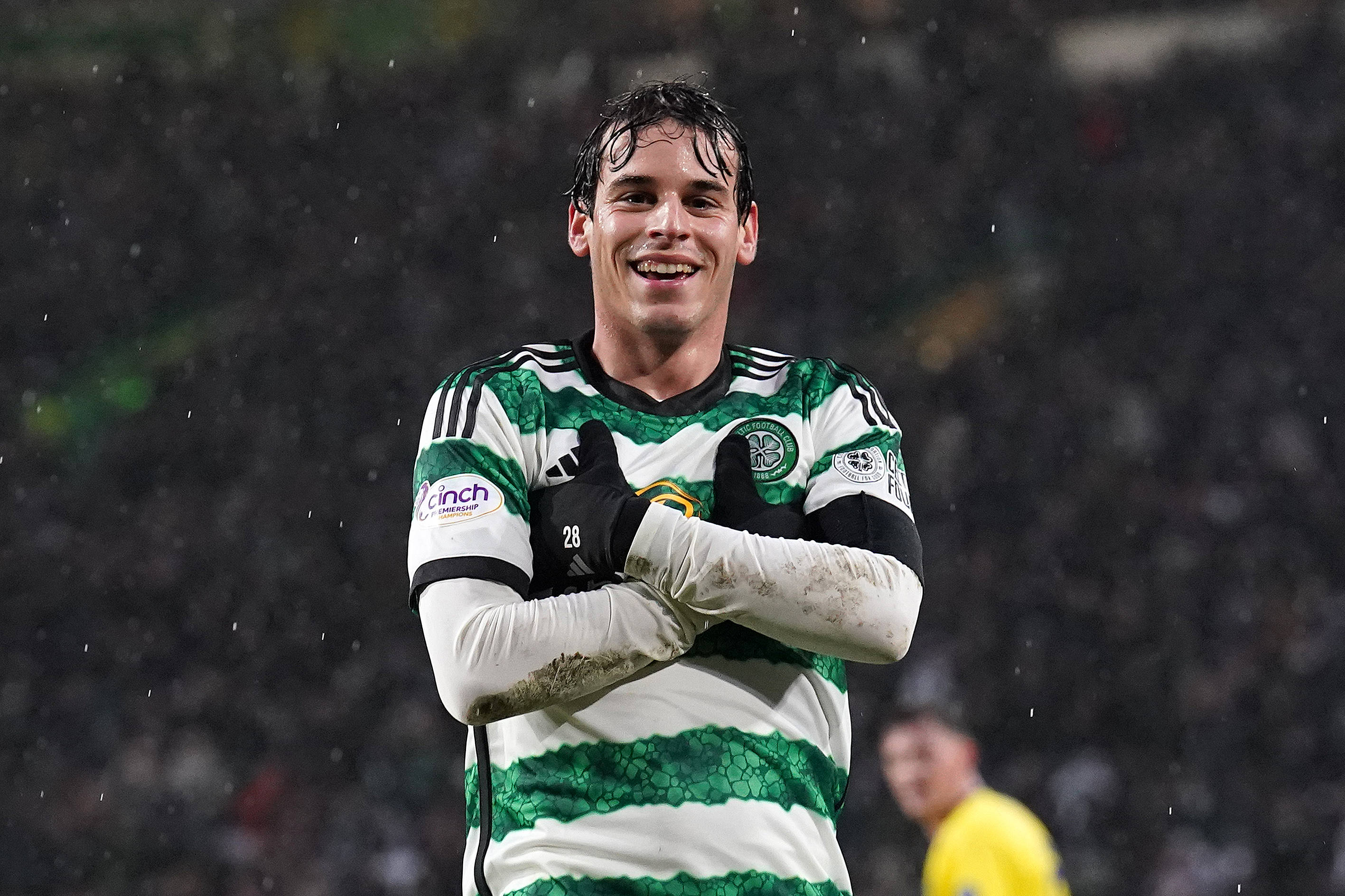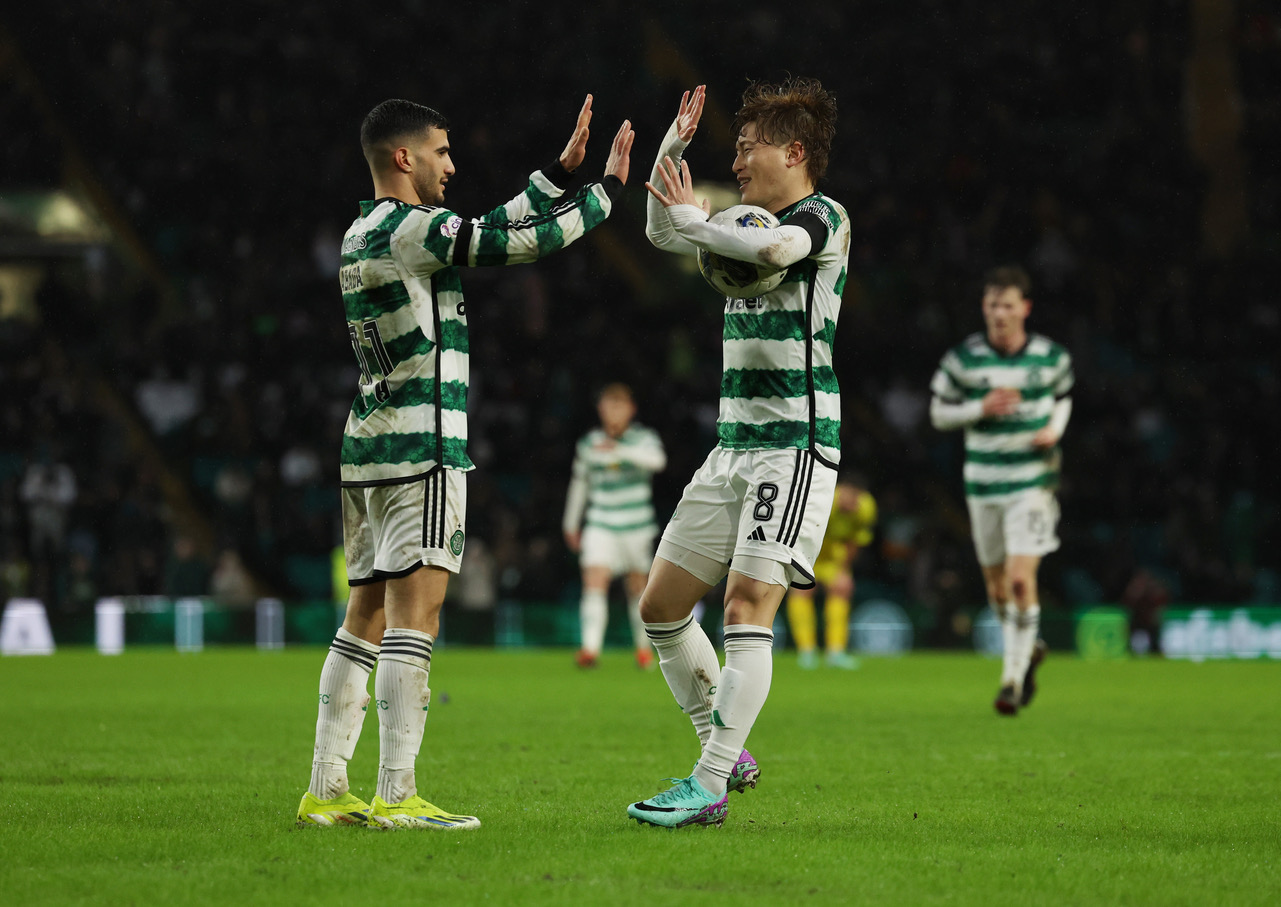 Kyogo Furuhashi celebrates scoring his team’s third goal during the the Celtic v Buckie Thistle – Scottish Cup match at Celtic Park on January 21, 2024 (Photo by Ian MacNicol/Getty Images)
