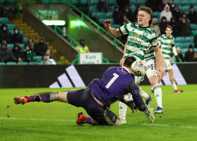 Odin Holm scores his team’s second goal during the Celtic v Buckie Thistle Scottish Cup match at Celtic Park on January 21, 2024. (Photo by Ian MacNicol/Getty Images)