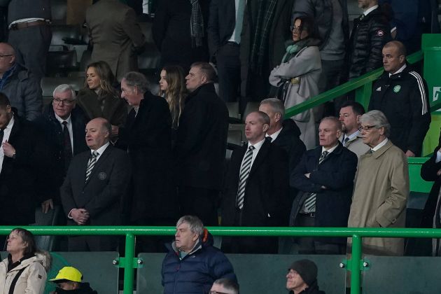 Celtic v Kilmarnock – Celtic chairman Peter Lawwell and CEO Michael Nicholson during the cinch Premiership match at Celtic Park on Saturday February 17, 2024. Photo Andrew Milligan PS Spot the summer signing a few rows back! Fit but not in the squad…