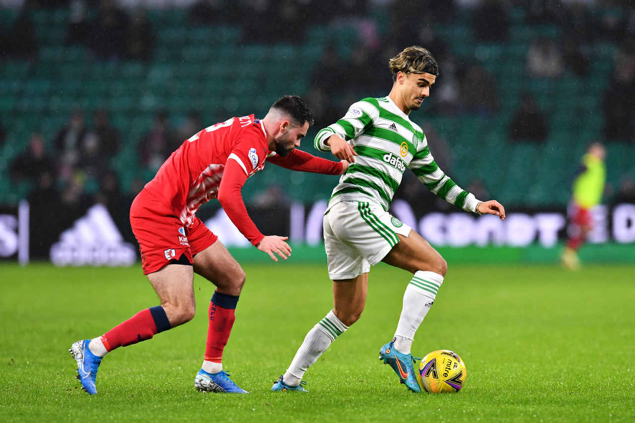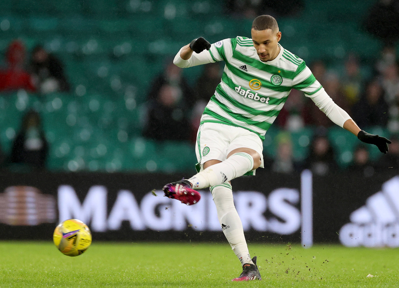 GLASGOW, SCOTLAND – FEBRUARY 13: Liam Scales of Celtic celebrates after scoring their side’s first goal with James Forrest during the Scottish Cup match between Celtic and Raith Rovers at Celtic Park on February 13, 2022 in Glasgow, Scotland. (Photo by Mark Runnacles/Getty Images)