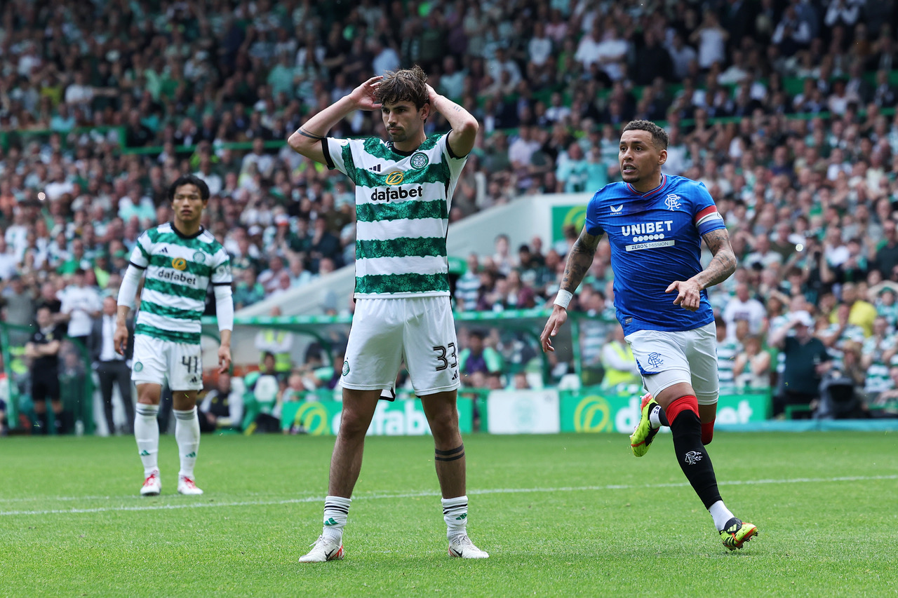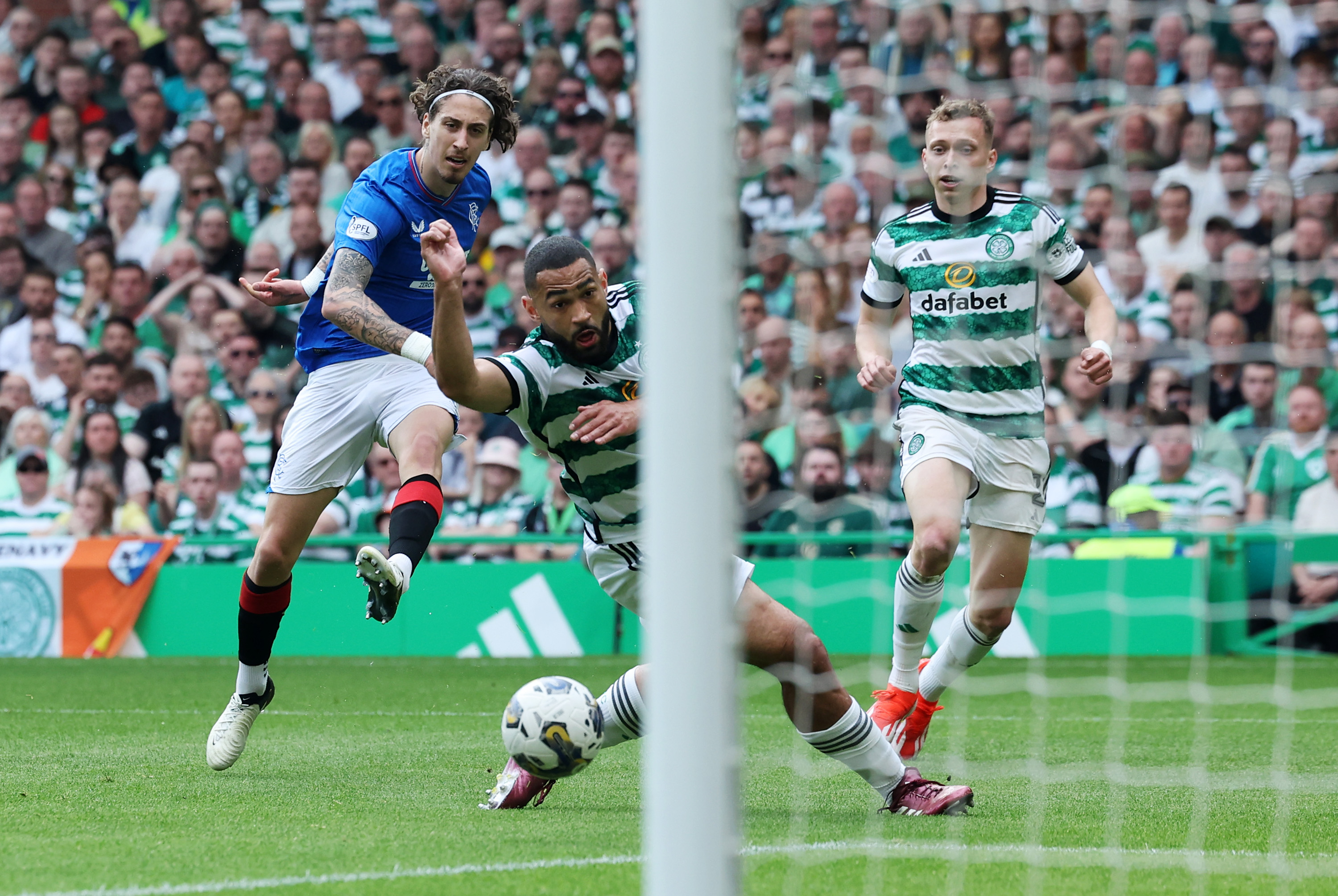 Fabio Silva of theRangers shoots but misses a chance during the Scottish Premiership match between Celtic and theRangers at Celtic Park on May 11, 2024. (Photo by Ian MacNicol/Getty Images)