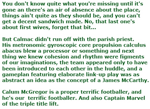 So thanks to you for the reactions an opinions and comments and occasional appreciation over the 40-odd matches that I encode with lunacy and distill through the pages of The Celtic Star/Celtic Noise (for the uncircumcised versions).