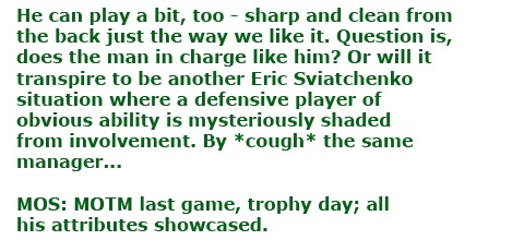 Remember – each single review opens as a 1000×500 jpg you can download, keep, send, print, set fire to. And ‘MOS’ means ‘Moment Of the Season’ for the acronym-allergic.