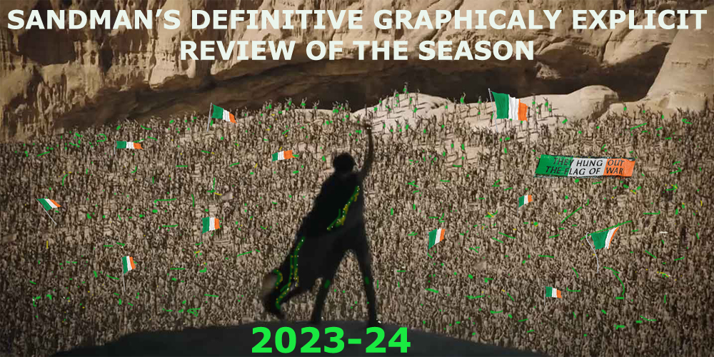 Here we go again. We’re at the end of the road again…Sandman’s Definitive Graphically Explicit Review of the Season.Too much madness for one article so it’s divided into parts. Here we go…