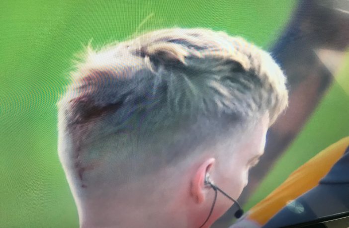 THE ASSISTANT referee in today’s Livingston v Rangers Premiership match has had suffered a injury to the back of his head after being hit by an object thrown from the Rangers supporters behind him.