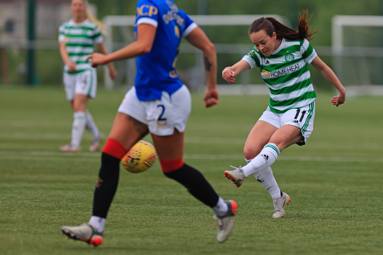 Celtic’s back three are strong defensive players. Kelly Clark is an excellent organiser, Cheyenne Shorts a graceful defender who doesn’t mind mixing it either, meanwhile Caitlin Hayes is a strong defender of her penalty area and a threat in the oppositions, as we saw with that incredible headed winner in the League Cup Final.