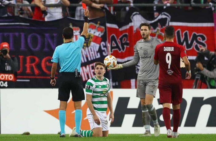 JAMES FORREST reckons he was harshly treated by the Ukranian referee Serhiy Boiko tonight in Salzburg. The Celtic star was red carded after tangling with Austrian wing back Andreas Ulmer.