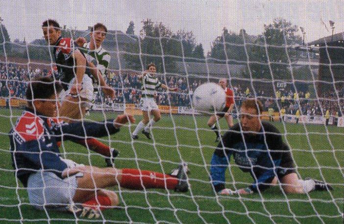 Then with time ticking away John Collins scored a goal that only he could and it sent the Celtic supporters in the small ground into euphoria. There was 89 minutes on the clock and no hopes of a comeback for the Bairns.