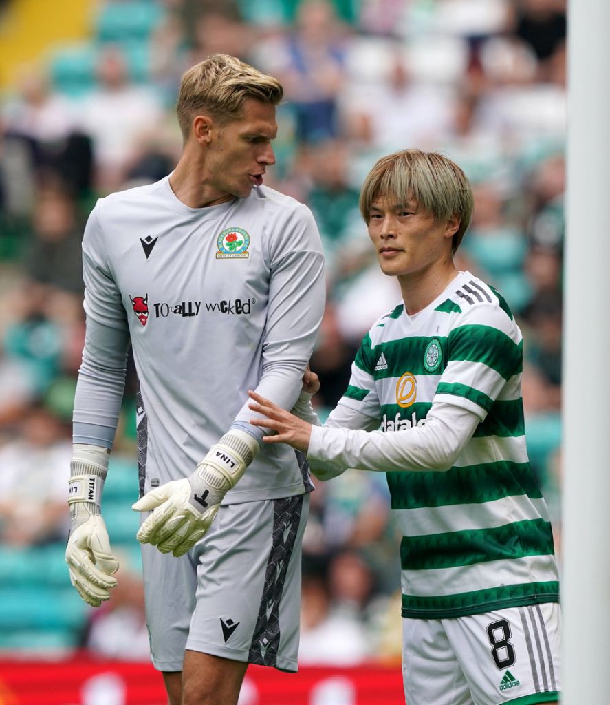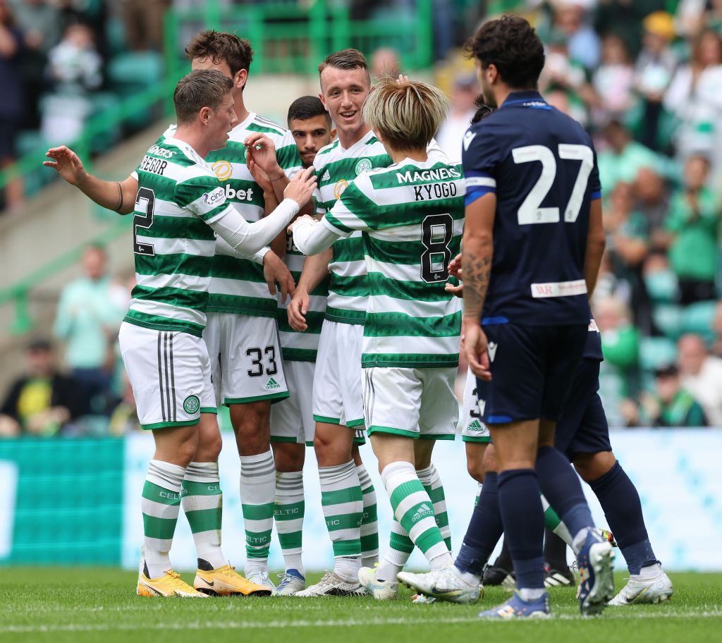 GLASGOW, SCOTLAND – JULY 16: David Turnbull of Celtic is congratulated after scoring his team’s second goal during the Pre-Season Friendly match between Celtic and Blackburn Rovers at Celtic Park on July 16, 2022 in Glasgow, Scotland. (Photo by Ian MacNicol/Getty Images)