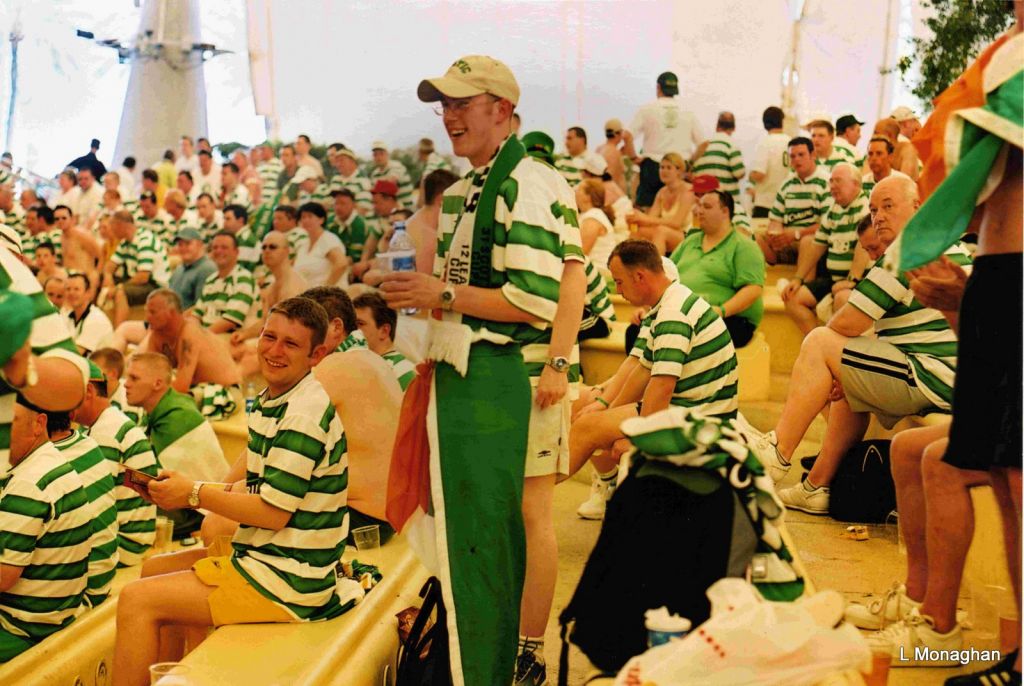 Celtic fans queuing for beer in Seville