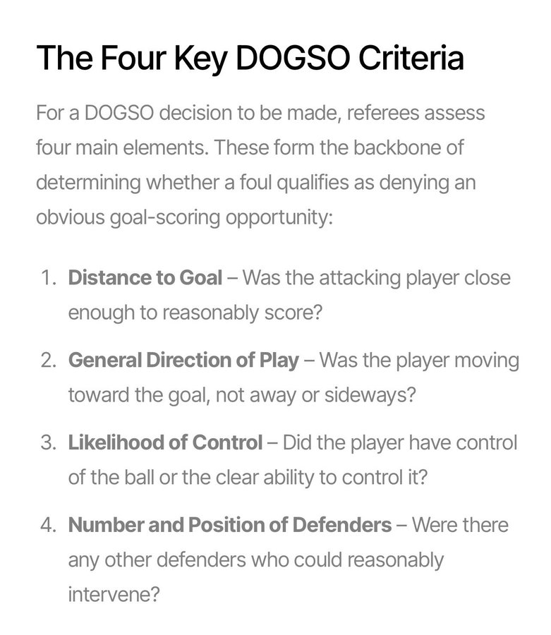 Numerous former referees have criticised the decision by John Beaton to get involved at all as the VAR after the match referee’s on-field decision was a yellow card. The four key “DOGSO” criteria are listed below. It is clear that the ball was moving towards the side and not directly at goal and would have to be retrieved giving two Celtic defenders time to cover.