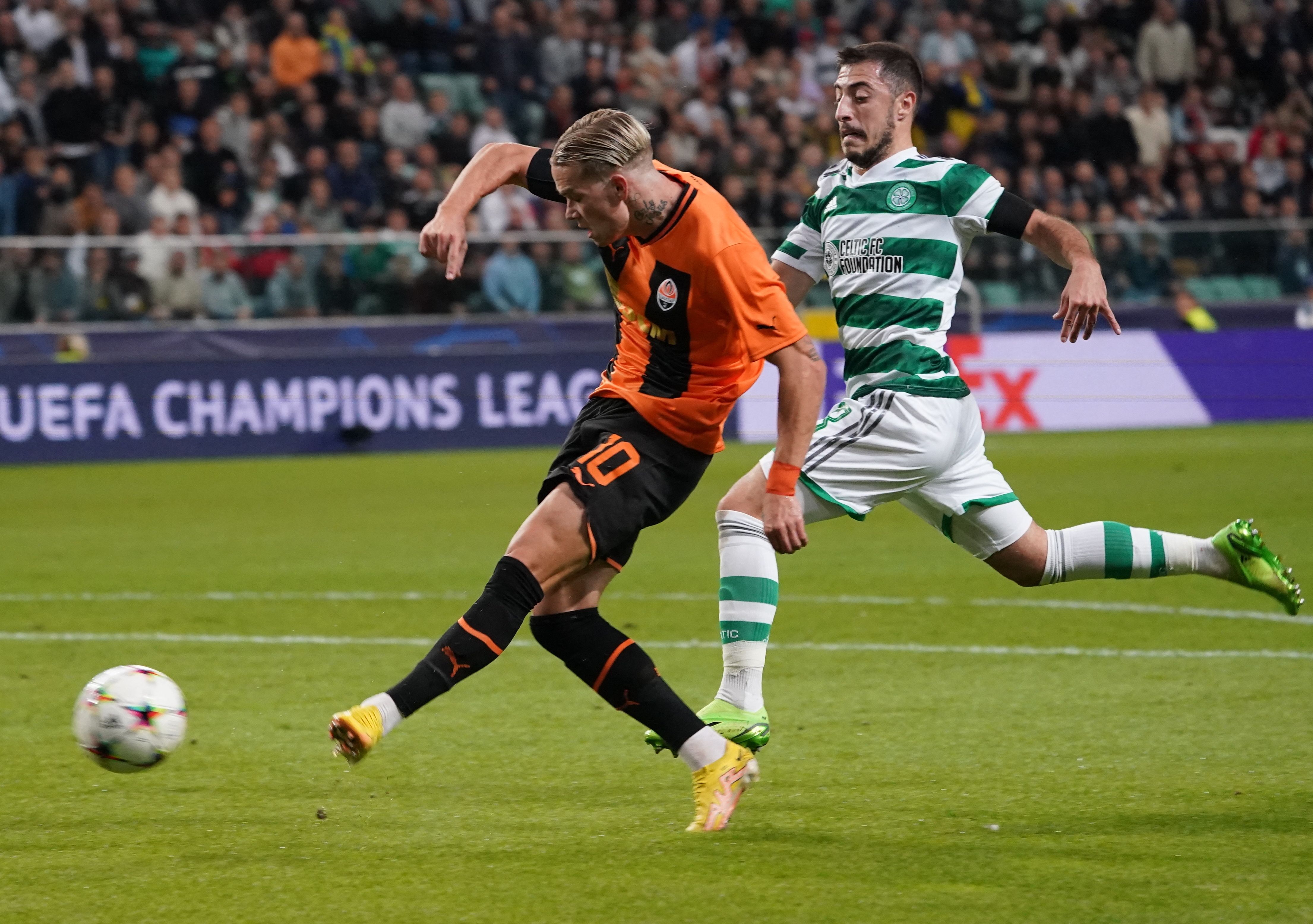 Shakhtar went on to have their best spell in the match but other than when former Celtic winger Marian Shved had two attempts to find the back of the net and managed it after a fresh-air strike, the flag was raised for offside and the ball had also gone out of play.