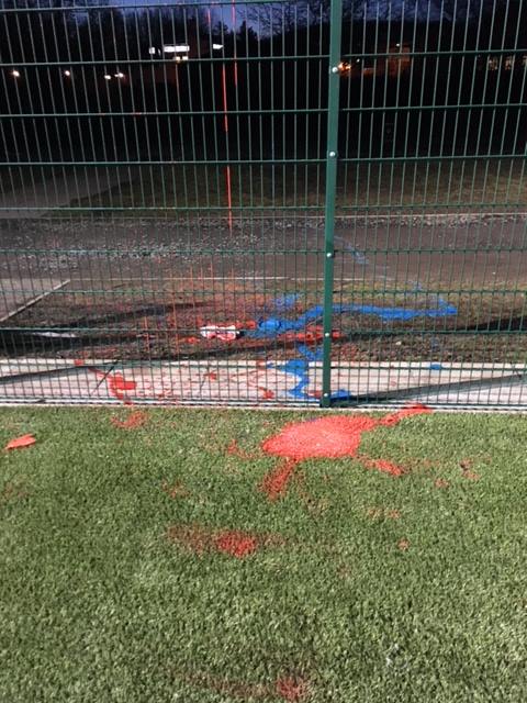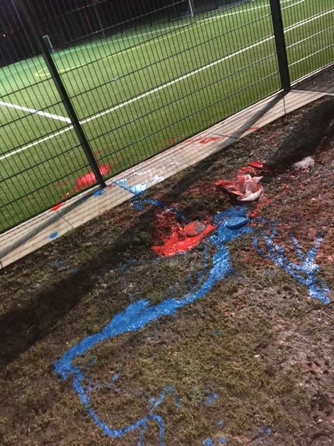 THE JOHN THOMSON 3G pitch in Cardenden has been vandalised with blue and red paint poured on the sign and the pitches.