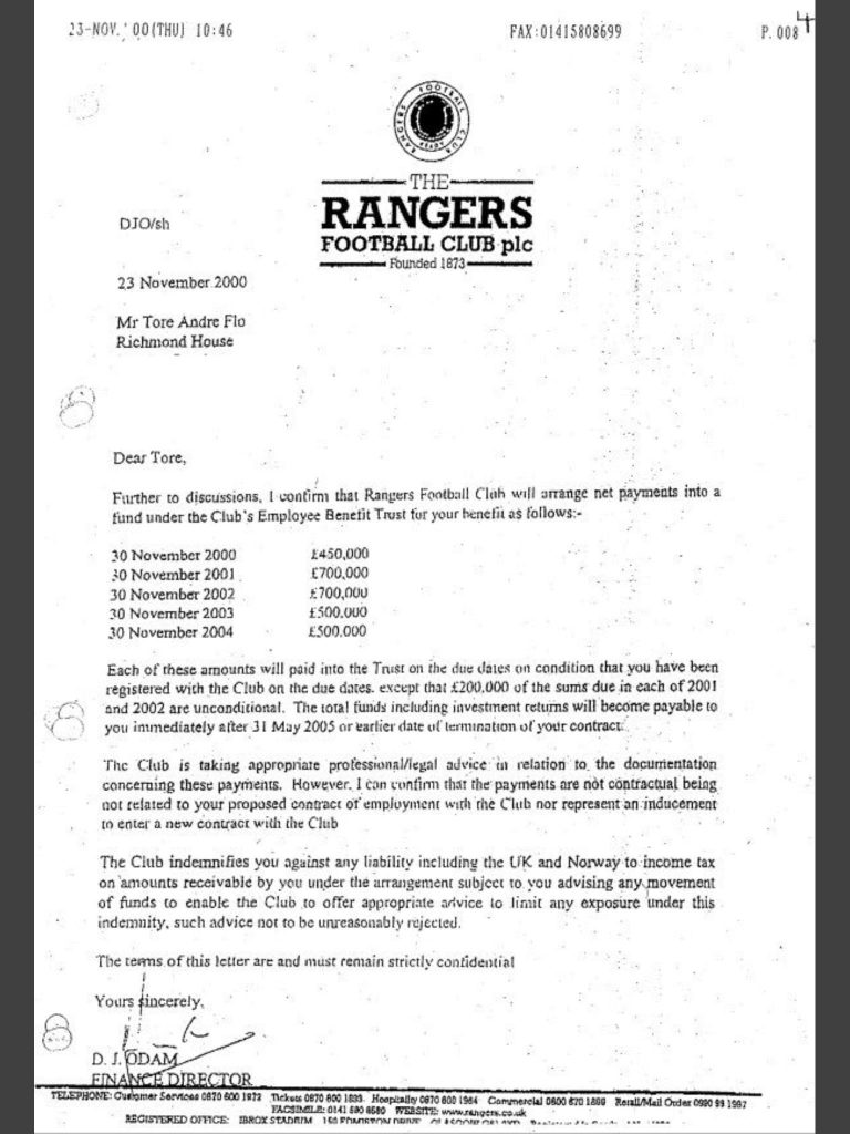 Now that the EBT tax demands are arriving on the doorsteps of all of those players and officials – including the current Scotland manager Alex McLeish – there could very soon be a legal challenge, or even a group action, challenging the ‘same club’ to honour the obligations made in those side letters that were issued by the club, as per this example.