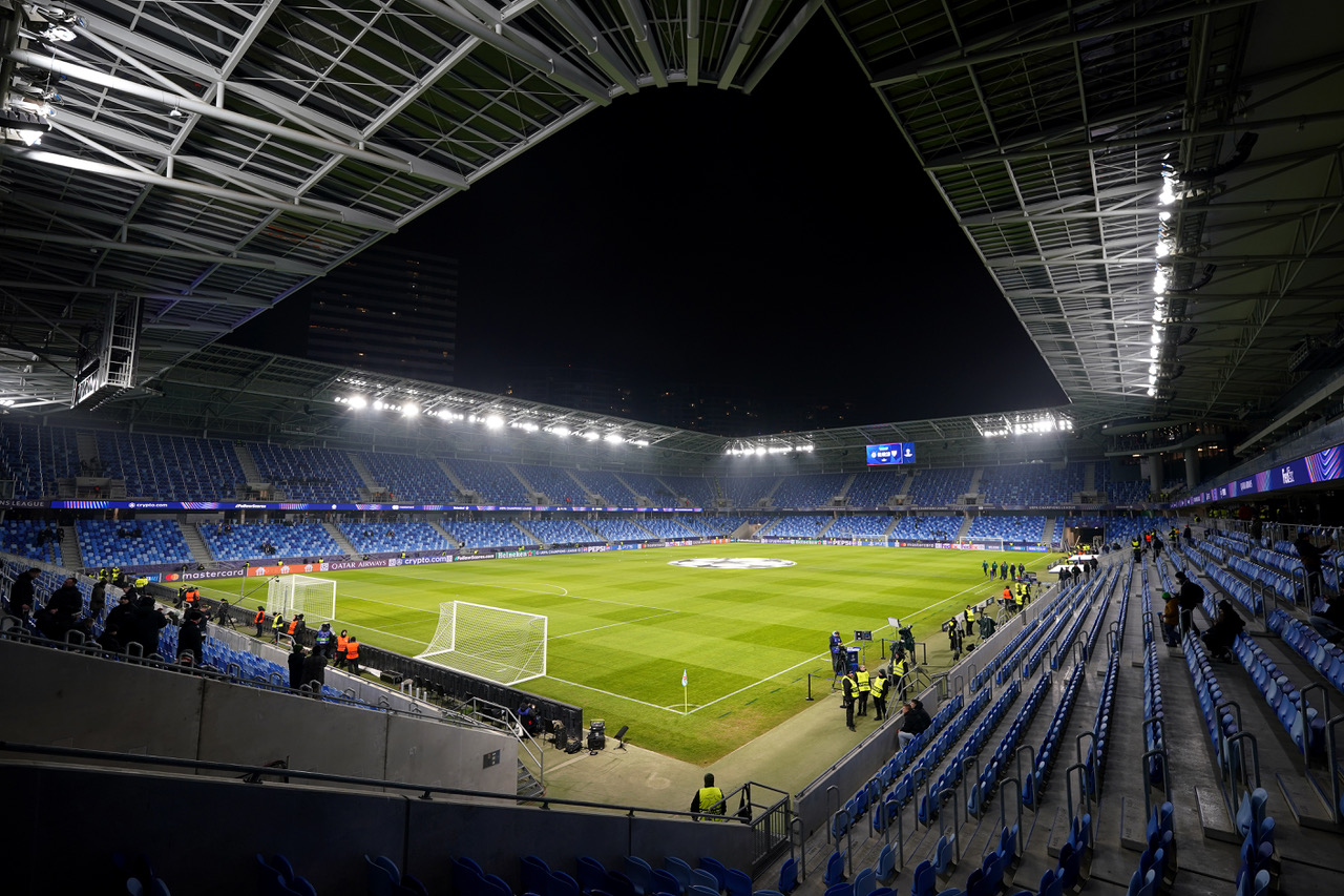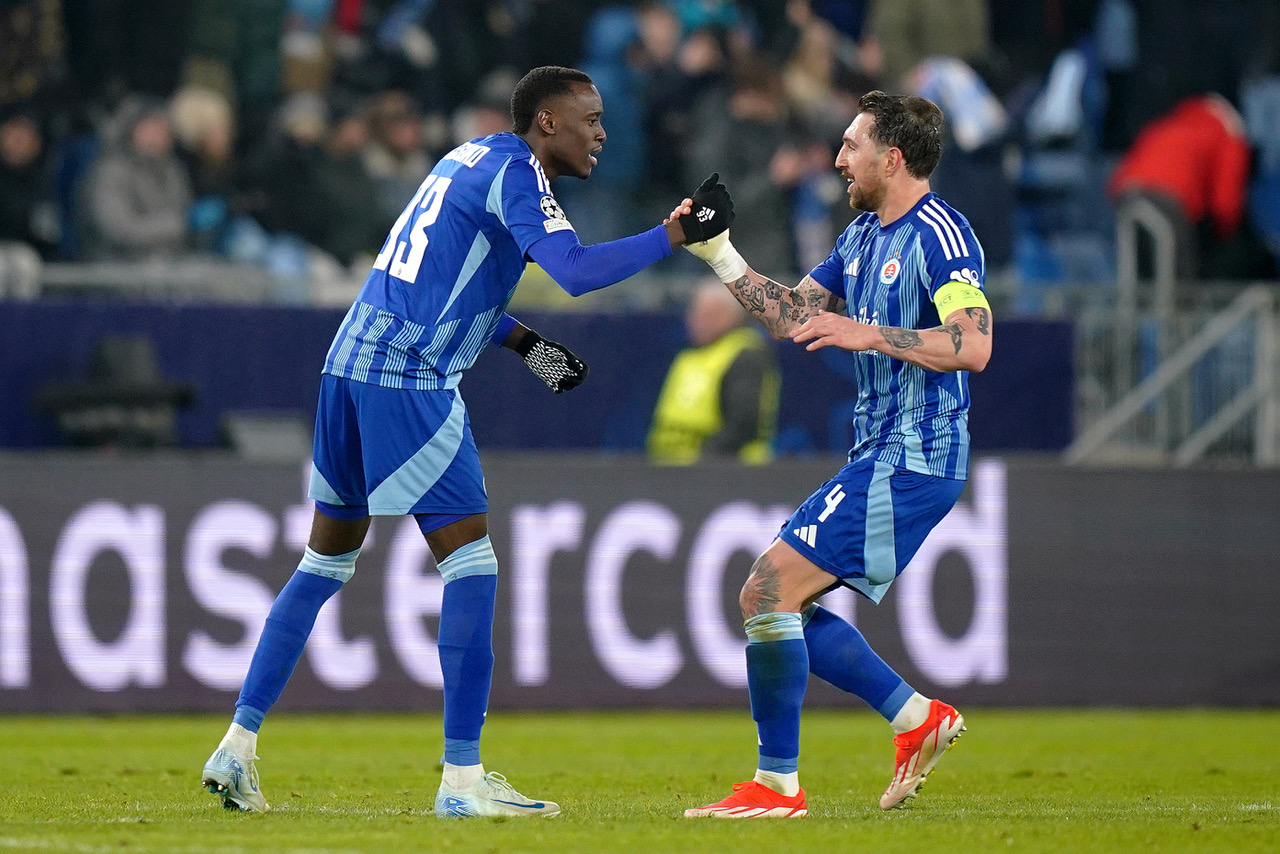 Fans of SK Slovan Bratislava cheer their team prior to the UEFA Champions League 2024/25 League Phase MD7 match between SK Slovan Bratislava and VfB Stuttgart at on January 21, 2025 in Bratislava, Slovakia. (Photo by Christian Hofer/Getty Images)