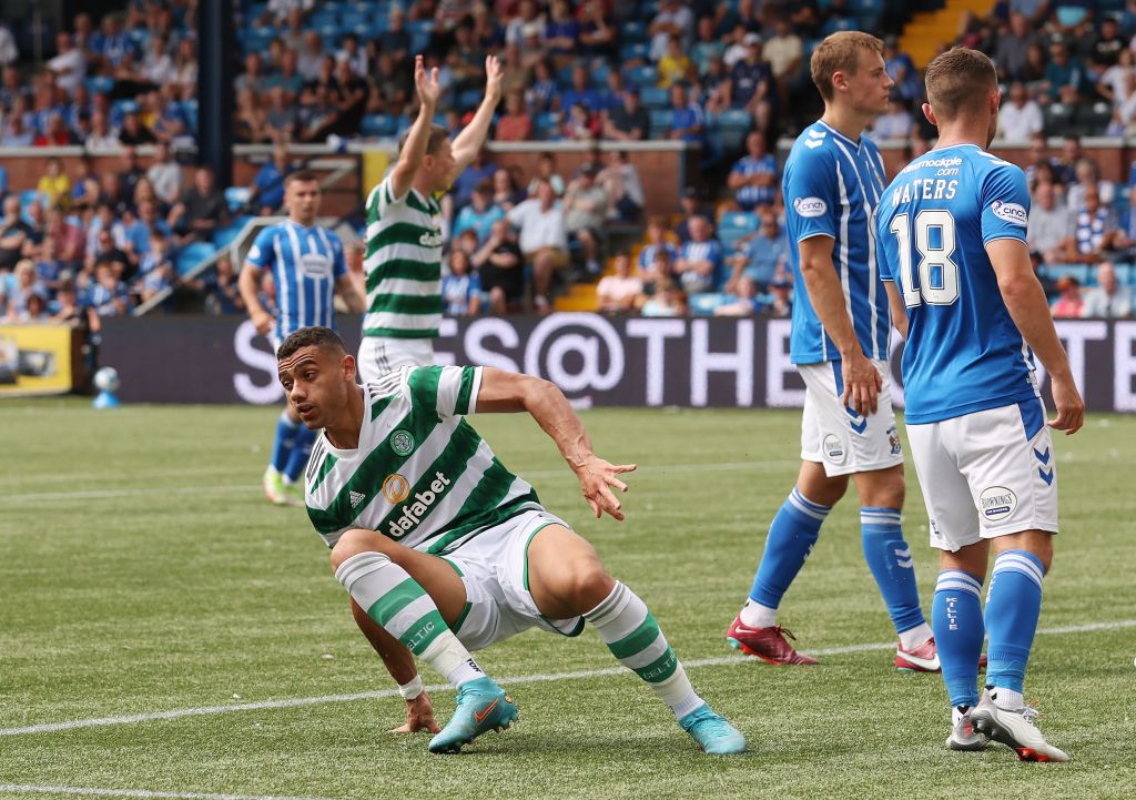 Giorgos Giakoumakis celebrates after he scores his team’s fifth goal during the Cinch Scottish Premiership match between Kilmarnock and Celtic at on August 14, 2022. (Photo by Ian MacNicol/Getty Images)