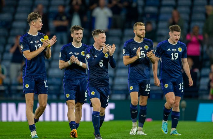20th June 2023; Hampden Park, Glasgow, Scotland: Euro 2024 Qualifier Football, Scotland versus Georgia; Scotland players applaud the fans