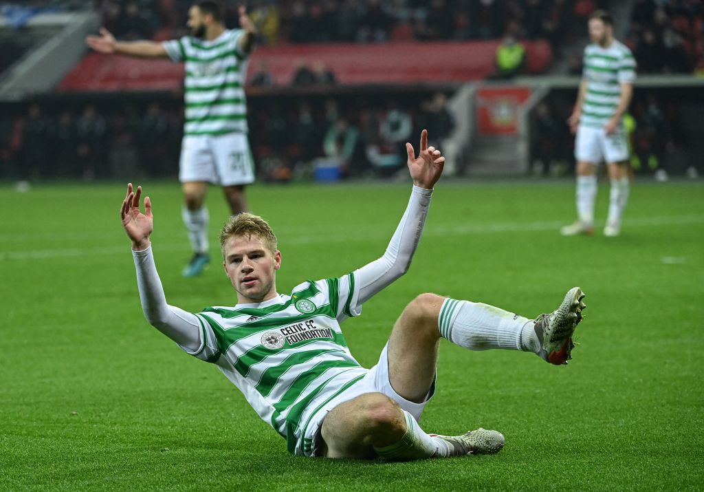 Stephen Welsh during the Europa League match Bayer 04 Leverkusen v Celtic in Leverkusen, November 25, 2021. (Photo by INA FASSBENDER/AFP via Getty Images)