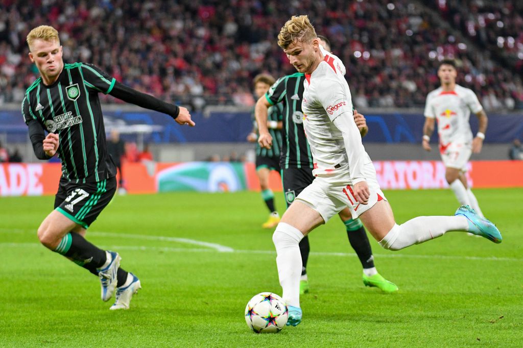 Stephen Welsh Celtic Glasgow and Timo Werner RB Leipzig re. RB Leipzig vs. Celtic Glasgow, Fussball, Champions League, 05.10.2022 Photo Eibner-Pressefoto/Bert Harzer
