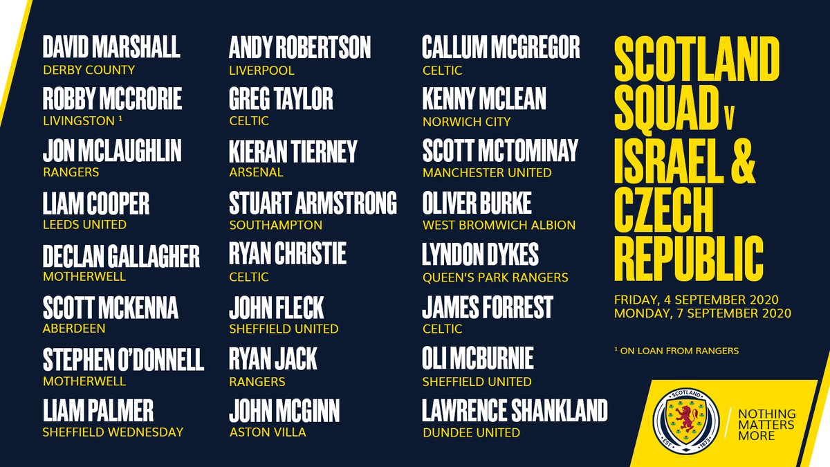 Your Scotland squad to face Israel and Czech Republic in the UEFA #NationsLeague next month. pic.twitter.com/BROlzBNdv2