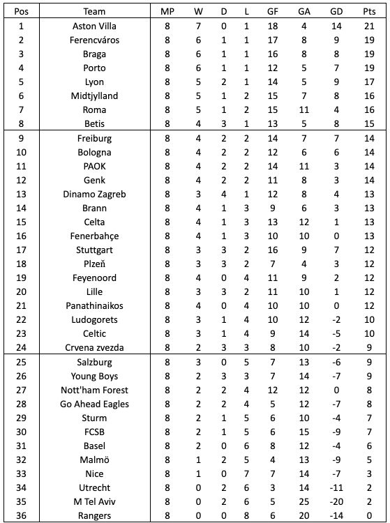 Teams failing to make it through to the play-offs include the likes of Salzburg, Young Boys, Nottingham Forest and Go Ahead Eagles with every club bar one picking up some points. The team that is tipped to finish a bruising campaign with zero points is theRangers with M Tev Aviv ending up second bottom with just two points more than the latest Ibrox club. Here’s how the Europa League SuperComputer sees things panning out…