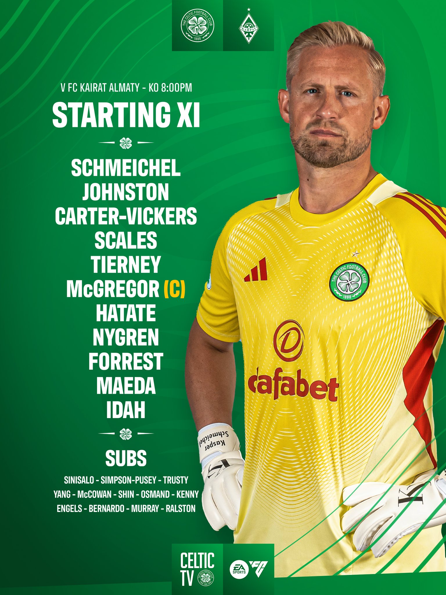 On the bench for Celtic this evening – Sinisalo, JSP, Trusty, Ralston, Murray, Engels, Bernardo, McCowan, Yang, Kenny and Shin.