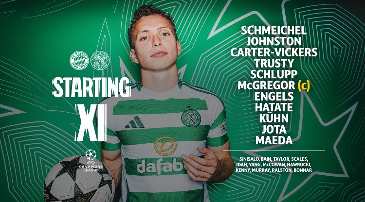 Meanwhile, Brendan Rodgers has named his side as he seeks to masterminded an upset at the Allianz Arena. The Celtic manager has made two changes from the side that will have felt disappointed at being beaten last week at Celtic Park. Jefferey Schlupp comes in for Greg Taylor with Jota coming into the team for Adam Idah.