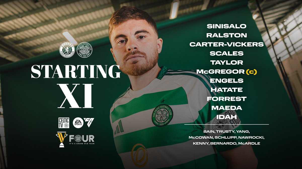 Vil Sinisalo starts in goals. The Finnish stopper has impressed since coming into the team. An expected back line of Greg Taylor, Liam Scales and Cameron Carter-Vickers with Tony Ralston coming in for the injured AJ. In midfield, Callum McGregor starts in the heart of the middle three with Arne Engels and Reo Hatate. In attack, Adam Idah starts through the middle with Daizen Maeda out left and James Forrest out right.