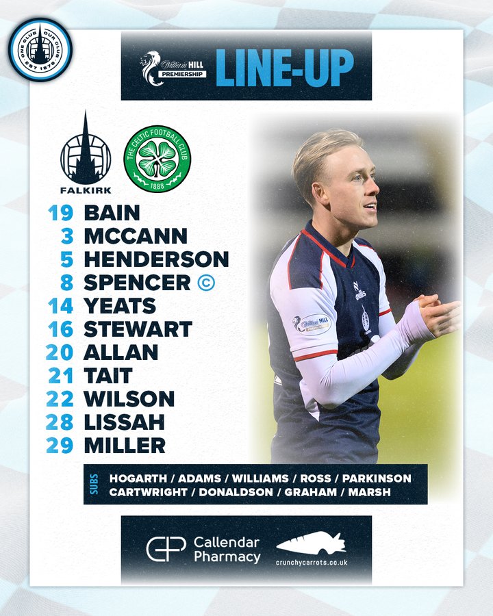 The Scottish Champions face John McGlynn’s Bairns at the Falkirk Stadium and O’Neill has made one change from the team that demolished Dundee United at the weekend. Benjamin Nygren comes into the team with Reo Hatate dropping to the bench, as predicted on The Celtic Star earlier today.