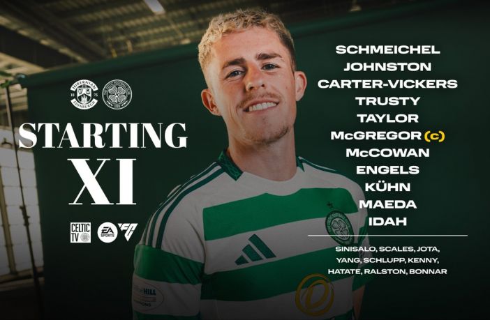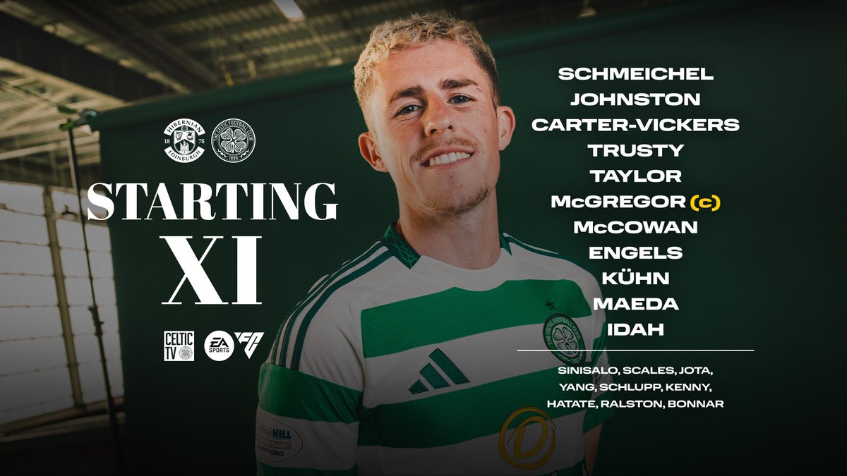 In attack, Adam Idah starts through the middle. The Irishman scored a goal of the season contender last week against Dundee United and will be keen to nail down that position. Daizen Maeda and Nicolas Kühn start in the wide areas. The pair linked up for the German’s second half goal at the Allianz Arena and they’ll be keen to inflict some pain on Hibs.