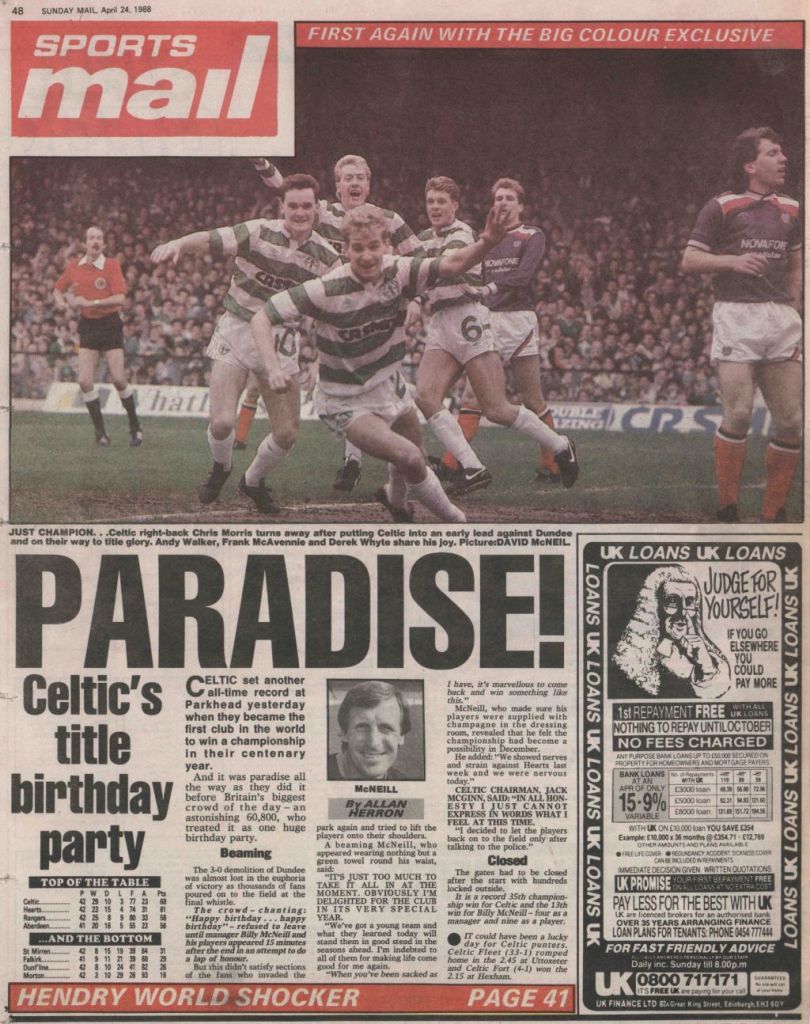 The old Celtic Park was seldom as busy as on that day in 1988 when Dundee were the visitors, just like today,. Celtic needed a win to wrap up the title and it was Chris Morris who grabbed the opening goal to get the party started before our attentions turned to Hampden and the Scottish Cup Final against Dundee United.