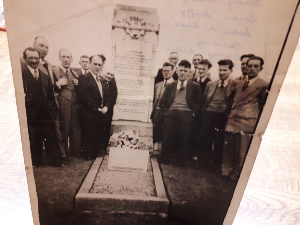This is the unique photograph and it shows members of the East of Scotland Celtic Supporters Club in the early 1950s  visiting John Thomson’s grave at Bowhill Cemetery in Cardenden, Fife. Below the photograph Neil gives us some information on these Celtic supporters from around 70 years ago. Neil is going to forward more photographs which we’ll let you see in due course.