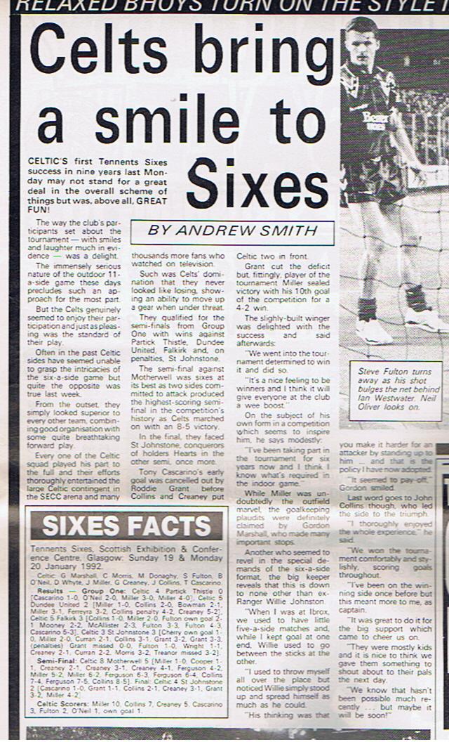 20th January 1992, Celtic win the Tennents Soccer Sixes.
