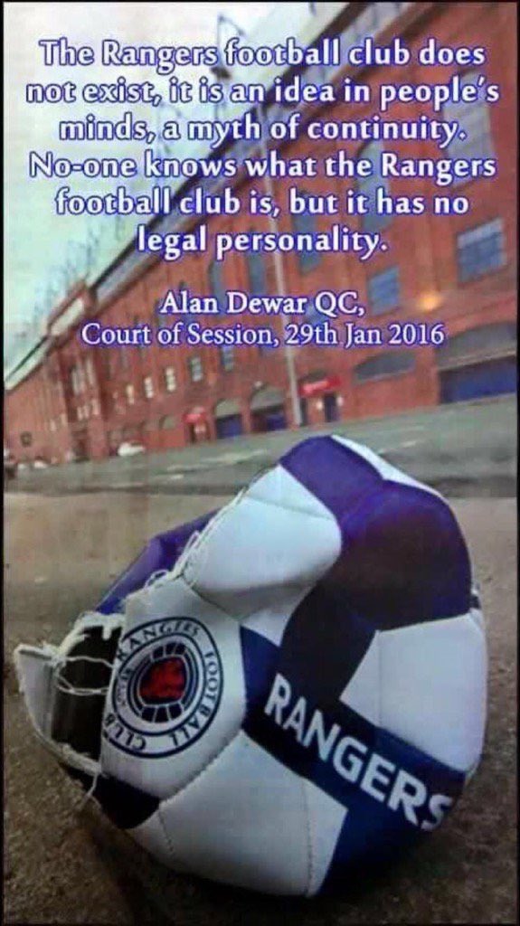 The club formerly known as Rangers FC is as dead as a dodo. The new club masquerading as the old Rangers FC is just that: a new club masquerading as the old club. Unfortunately, when conclusive proof of the demise of Rangers FC is brought to the attention of Rangers fans, there is an apoplectic response: one is either deluded or a Rangers Hater, or both. Fortunately, insolvency law usurps personal insult.