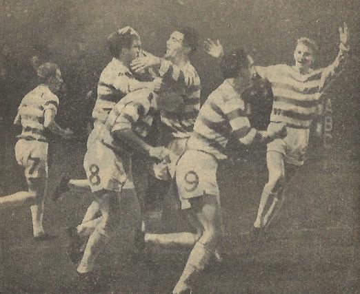 The goal fest continued after the interval as Ferguson rattled the stanchion inside three minutes of the restart, to make the scoreline 4-2 in Dunfermline’s favour. Jock Stein’s fitness demands then began to pay dividends as Celtic wore the Pars down and took control as the game progressed. Bertie Auld scored on 62 minutes, then Joe McBride finally got an equaliser for the Celts in the 69th minute. With 20 minutes remaining and the score locked at 4-4, both teams went all out attack. It was Celtic who won though, thanks to an 89th minute penalty, which was awarded after Stevie Chalmers’ header was handled off the line. McBride thundered home the spot kick to give Celtic an incredible 5-4 victory!