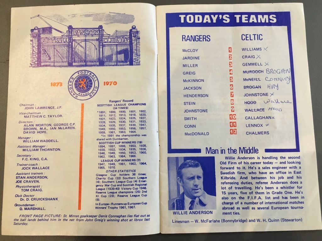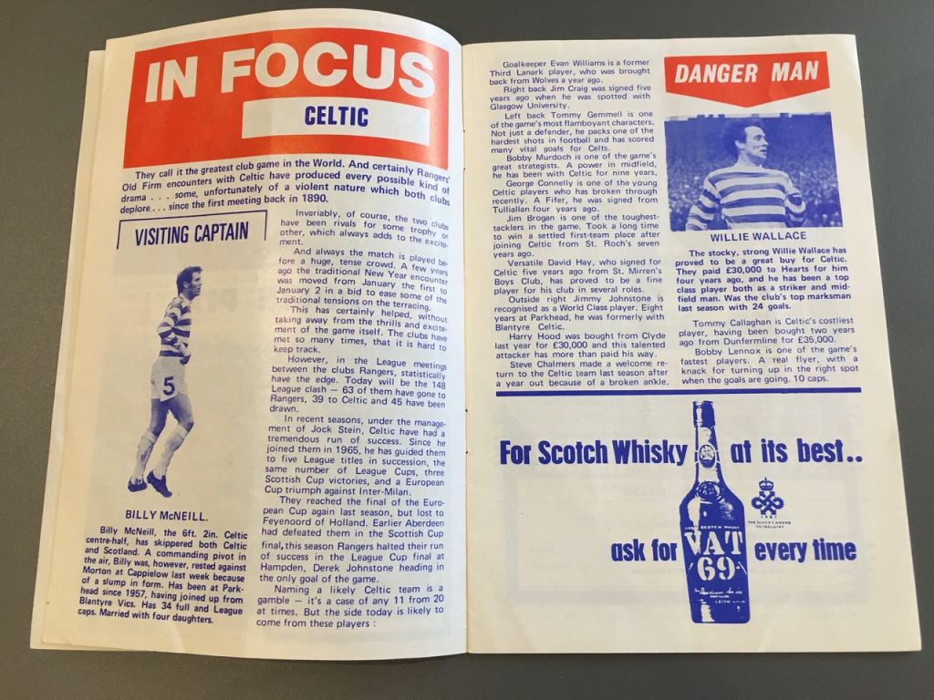 In conditions which did football a huge disservice, both sides enjoyed periods of dominance, however, the only goal action took place in the closing minute of the game. First Jimmy Johnstone followed up on a shot from his pal Bobby Lennox which beat Neef all ends up but crashed off the crossbar, the little winger then grabbing one of so many headed goals he would enjoy in these fixtures. He would not have time to savour this one though, as a long, desperate free-kick from Dave Smith was propelled into the packed Celtic penalty area for Colin Stein to scramble past the tracksuit-bottomed Evan Williams. Sadly, the match details would prove later to be pretty irrelevant.