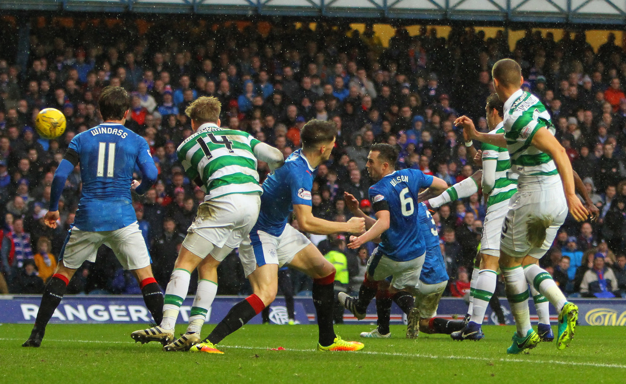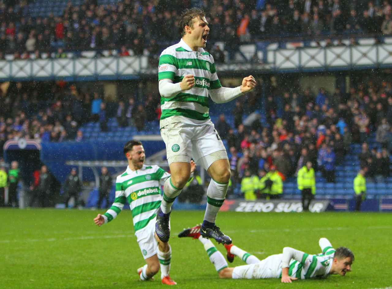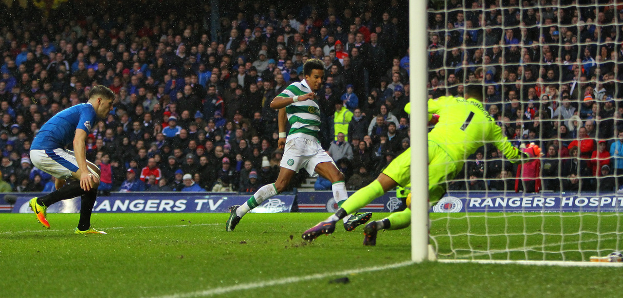 The hosts started well, Stuart Armstrong’s timely challenge preventing a goal before they did take the lead in the 12th minute. It was a soft one to concede, Erik Sviatchenko beating Joe Garner to the ball before inexplicably giving it away, a pass played inside Emilio Izaguirre – making his 250th appearance in the Hoops – for James Tavernier to slide across the six-yard box to the waiting Kenny Miller, who gleefully netted his trademark goal against the club he once served. Garner had fallen awkwardly in the lead-up to the goal and failed to recover, replaced by Martyn Waghorn before the game restarted.