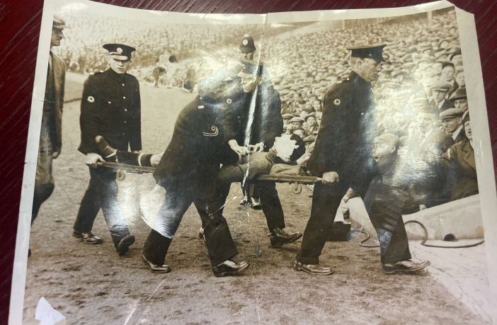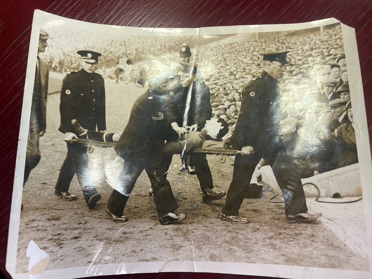 The events have been heavily chronicled, and dozens of photographs scrutinised, but I have to confess to never seeing this image before. It shows a bandaged John heading down the Ibrox tunnel, from where he would be taken to Glasgow’s Victoria infirmary. He is accompanied by Will Quinn, seen here on the extreme left of the photo as the ambulancemen care for John, whose life would end around 9.30 that evening.
