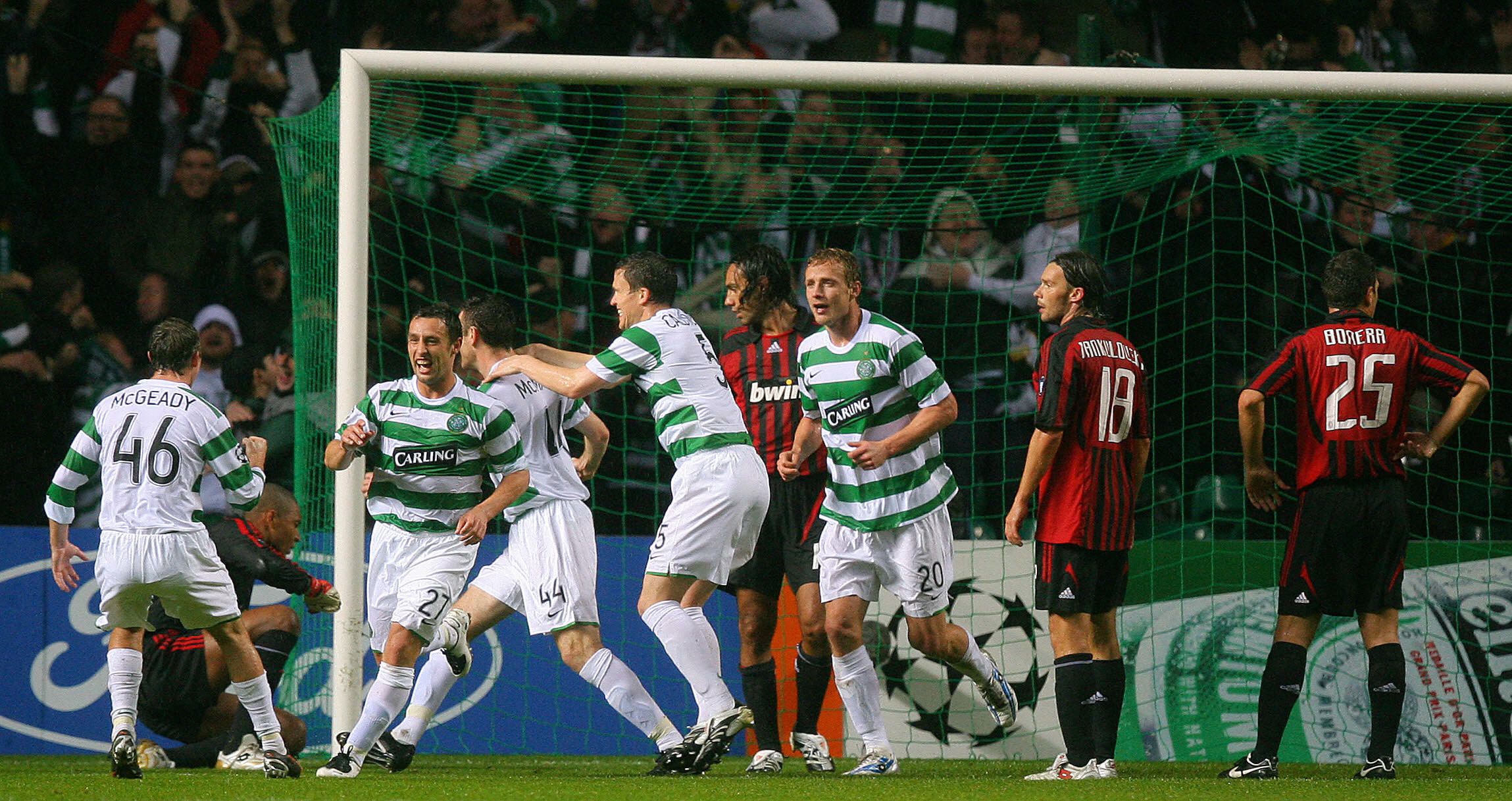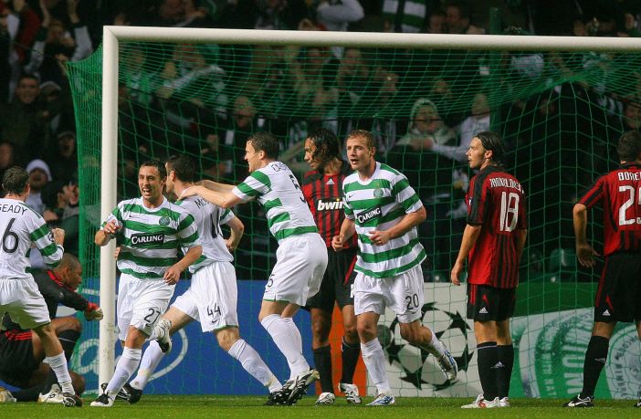 However, it would be Celtic’s day thanks to goals from Stephen McManus and Scott McDonald as Gordon Strachan’s side took a step towards qualification for the next round with a famous win. Strachan’s Celtic teams were often pragmatic and robust, on this occasion they controlled the game for an hour, allowing Milan to have the ball and limiting their chances. After 62 minutes, the skipper ‘Big Mick’ got the goal bundling in from a corner.