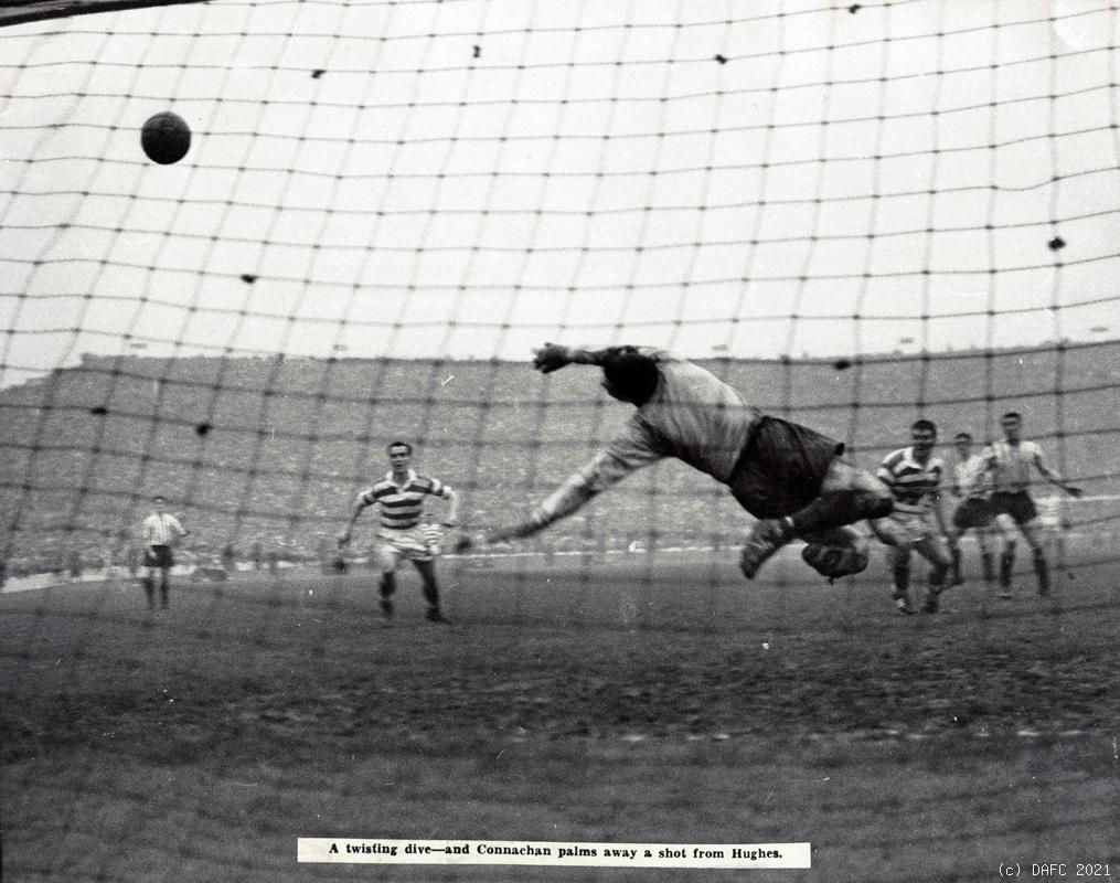 The commentator (George Davidson as I recall) enjoyed the game and I still recall the raising of his voice as attack mounted upon attack “a nice stab by Fernie” “another lovely pass from Crerand” to Hughes “but once again, Connachan dives to save the day for Dunfermline”. “Chalmers will never have a better opportunity”. Goodness knows how many saves Eddie Connachan had that night, and if we had not known his name before, we certainly did now!